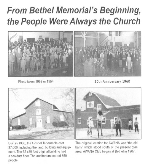 Bethel Memorial Church was founded in January 24, 1930 by Rev. John C. Cummins. It was first called The Gospel Tabernacle and became known as Bethel Memorial Church in 1959. The 160 charter members came from Princeton, Ft. Branch, and neighboring communities. For several weeks, the congregation met at IOOF facility in downtown Princeton.